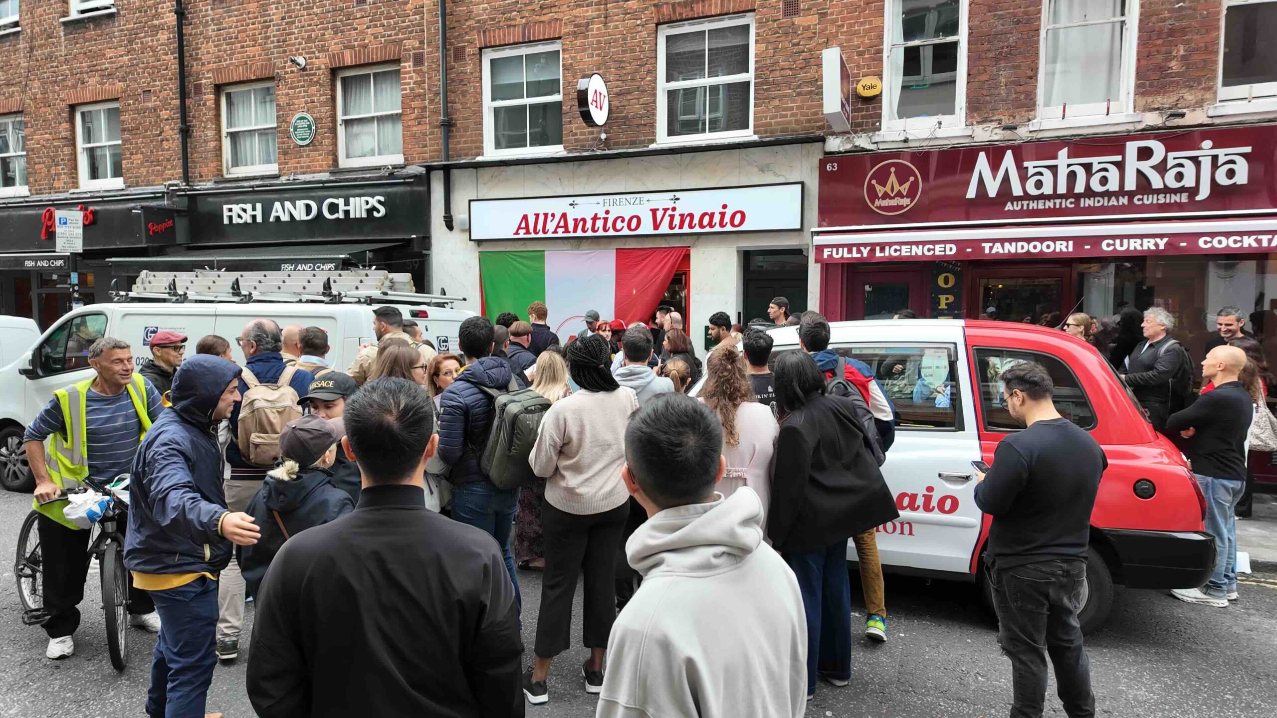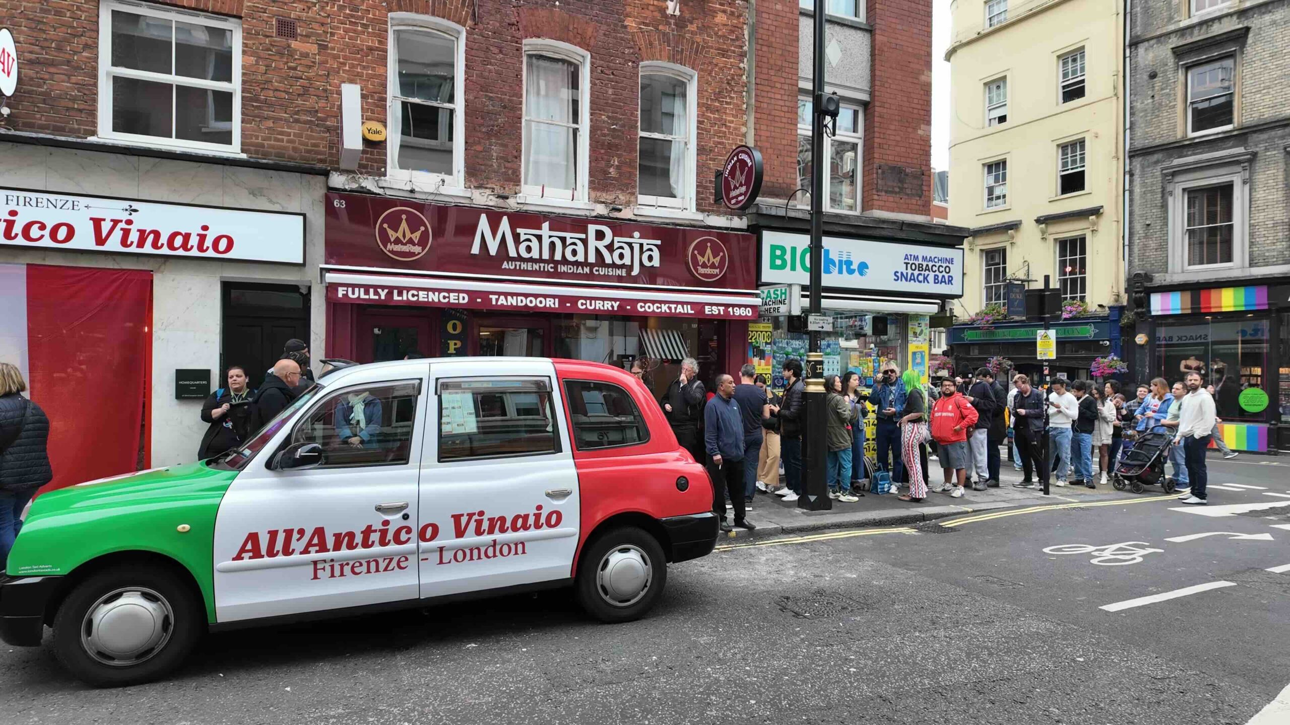 A fully wrapped London taxi, bold, unmistakable and proudly carrying their Italian identity, became the centrepiece of the opening. Parked outside their new Soho store, the taxi transformed the street into an experience. Crowds gathered, people stopped to take photos, and a queue of 200+ people formed down the road, signalling that something special had arrived in Soho.